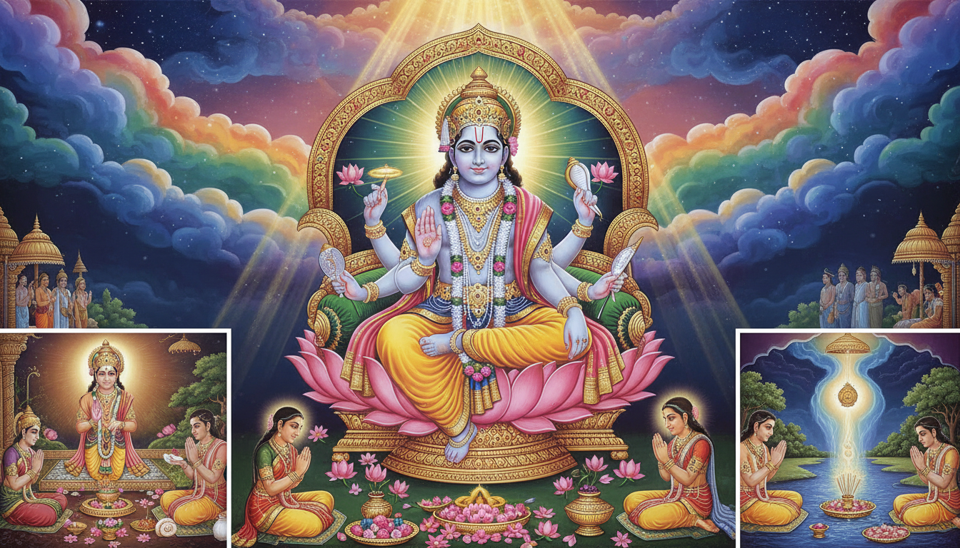 2. рд╕рдВрдХрд▓реНрдк: рднрдЧрд╡рд╛рди рднрдЧрд╡рд╛рди рд╡рд┐рд╖реНрдгреБ рдХреА рдкреНрд░рддрд┐рдорд╛ рдХреЗ рд╕рдореНрдореБрдЦ рд╣рд╛рде рдореЗрдВ рдЬрд▓ рдФрд░ рдЕрдХреНрд╖рдд рд▓реЗрдХрд░ рд╡реНрд░рдд рдХрд╛ рд╕рдВрдХрд▓реНрдк рд▓реЗрдВред