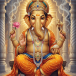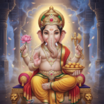 Lord Ganesha is the compassionate remover of obstacles, embodying wisdom and prosperity through his unique divine form. He sits gracefully with an elephant head, symbolizing cosmic intellect and the vastness of the universe.